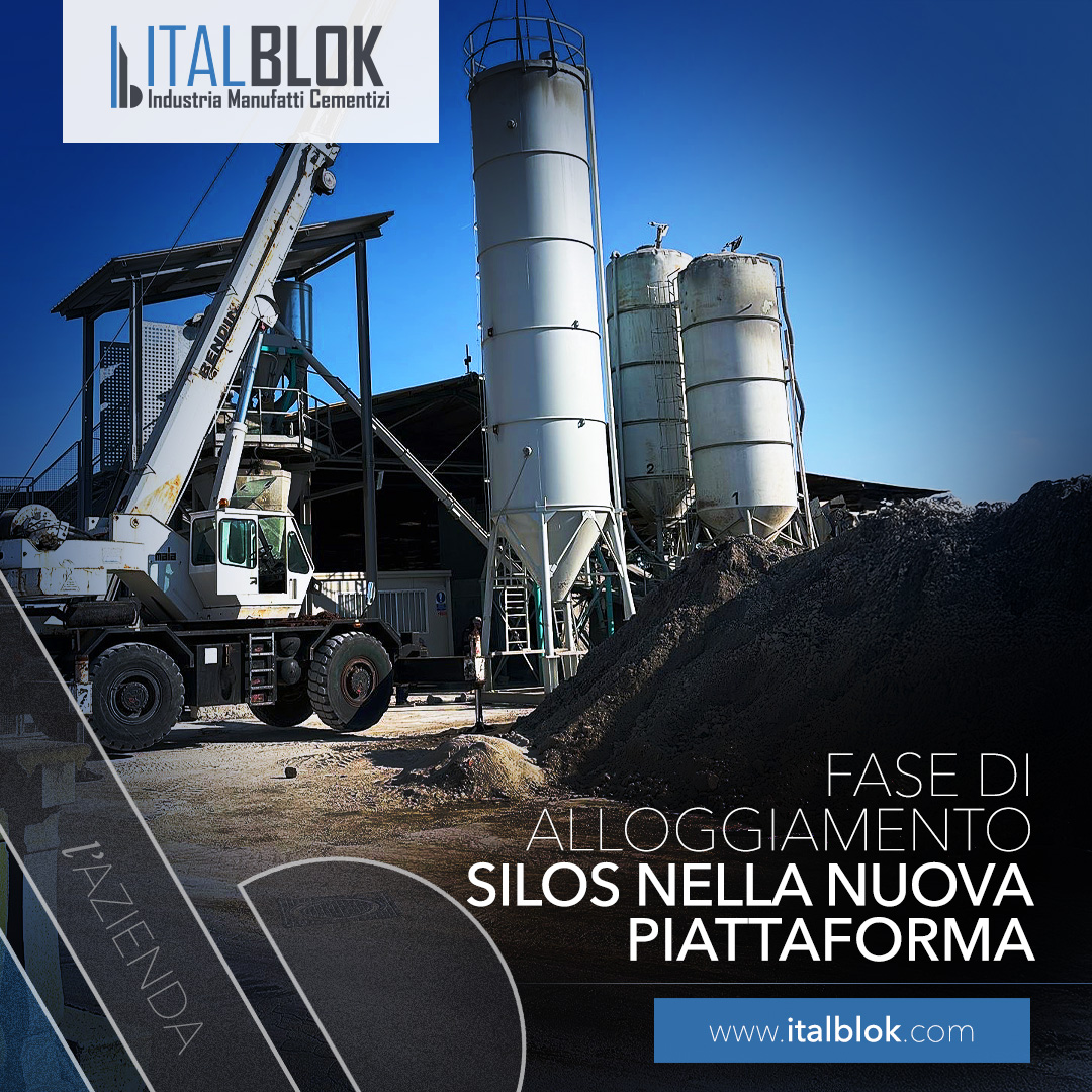 Oggi in azienda siamo impegnati nella fase di alloggiamento del Silos sulla nuova piattaforma appena ultimata.